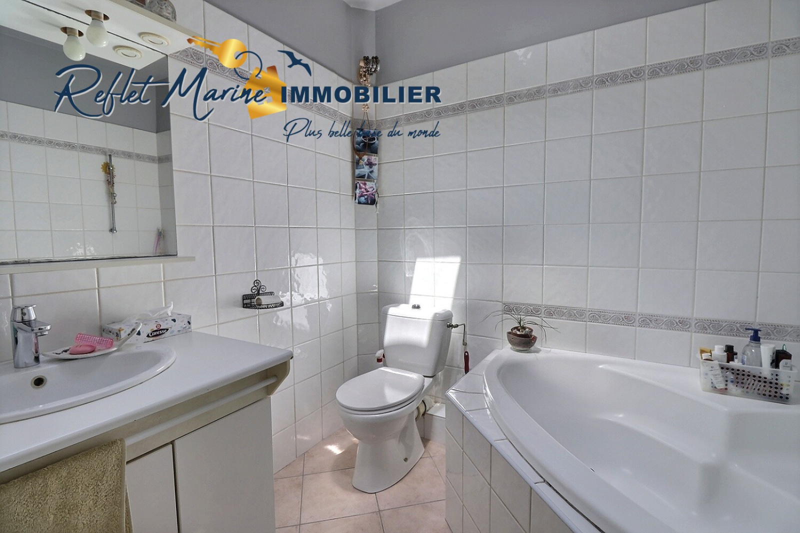 Grande salle de bains avec baignoire d’angle