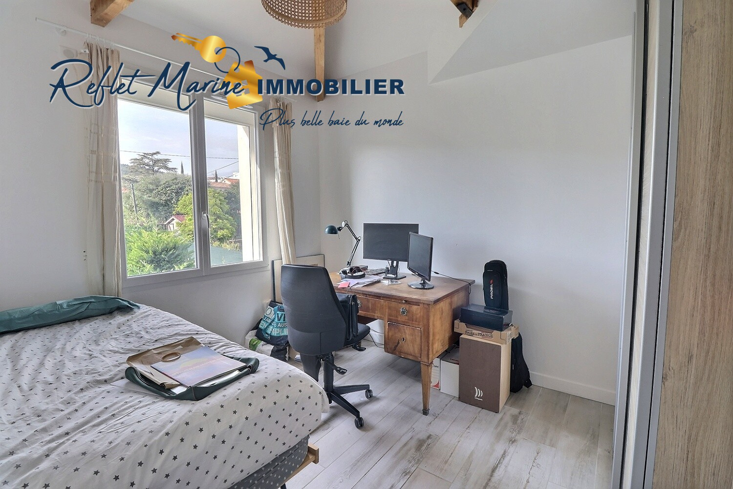 À l’étage, l’espace nuit se compose de quatre belles chambres, dont :